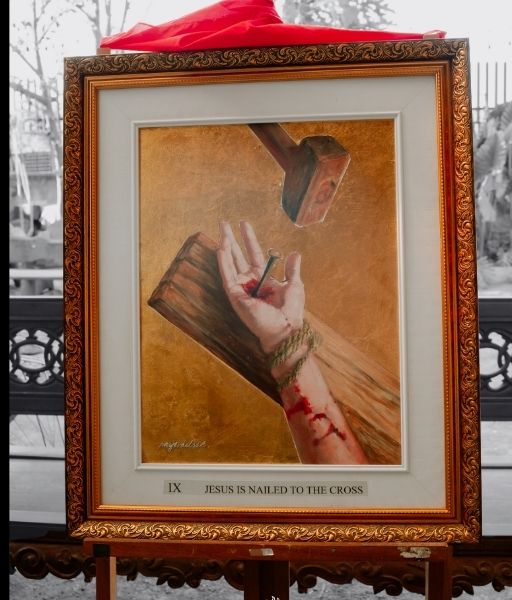 Titled “Via Crucis”, the Lenten exhibition ran from March 21 to April 4 at Galerie du Soleil in Brgy Ususan, Taguig City. The initiative was led by Danny Rayos del Sol, former head of the National Committee for Art Galleries at the National Commission for Culture and the Arts, with the intention of creating a space for quiet reflection during the Lenten season. Participating artists included: