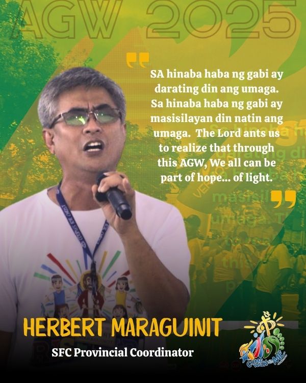 Fr. Ned beamed with pride to witness that AGW participation grew in numbers so much that they required a bigger venue. He then reminded the attendees that despite the current issues and turmoil throughout the country and in our own lives, the Lord is always present—and always will be. That the Lord will never tire of tending, gathering, carrying and leading His flock was a timely message of hope and assurance. In these challenging times where war rages on in the Middle East and famine continues in the Gaza Strip, alongside widespread corruption and threat of natural calamities in the Philippines, the Lord sends a message of love and hope.