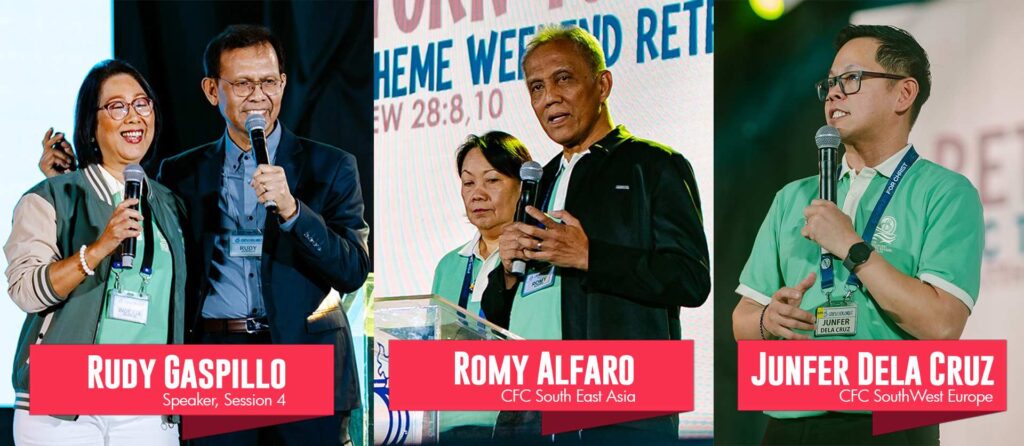 The World Mission Rosary once more opened the day, this time led by CFC Northeastern Luzon’s Tony and Liza Dela Cruz. CFC Singapore’s Rudy Dimayacyac welcomed attendees through a worship with an impactful testimony of finding and witnessing God’s powerful grace at work in all circumstances, and for him, it was when he was diagnosed with cancer. Indeed, it was a day of learning and reflection as attendees understood what it meant to “Rejoice! Take courage! Return to Galilee!”