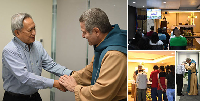 CFC Chairman/ President Joe Yamamoto welcomed Fr. Alexandre Paciolli, ICM, a priest from the Archdiocese of Rio de Jainero in Brazil, and Founder of the Merciful Gaze Catholic Community when the latter visited the CFC Global Mission Center in Quezon City, Philippines. Fr. Paciolli also celebrated Mass on May 23, 2023 at the CFC GMC Chapel, and blessed the GMC workers individually after the Mass.